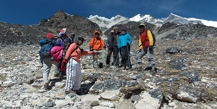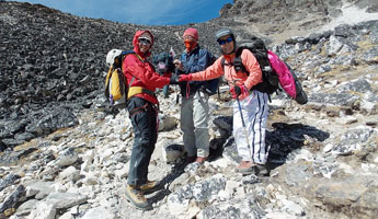 | 高度順応に上がっておられたドイツ在住のフクダさんのパーティと出会いました。 この人たちは明日ハイキャンプへ移動してこられるようです。 |