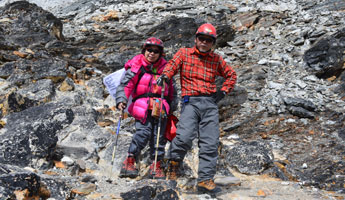 | リーダーのマッチンドラー氏は、ハイキャンプで待機しているスタッフに、無線で連絡し温かいホットレモンを岩場の上のほうまで運んできてくれました。この心遣いには深く感謝、良いスタッフと巡り合えたことを喜びました。 | ||||