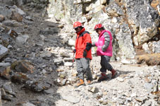 | アイゼンチェンジポイントでアイゼンを外し、ハーネスを外し、ピッケルやガチャを仕舞ってハイキャンプを目指します。それでもジョンの歩きは一歩一歩です。 | ||||
