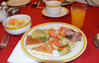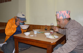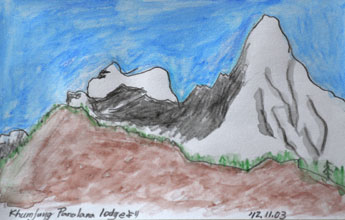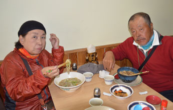 | 町を散策するもホコリっぽさにお手上げ。咳は出るし、今夜の夕食は「タイ料理」だと誘われるがちょっとおっかないため「ノー・サンキュー」を決め込みました。 夕方、またまた日本料理店のノレンをくぐりました。何とそこには島田氏もいて世間は狭いねと「トンカツ丼」に舌鼓をうちました。味はまぁまぁってとこかしら。島田氏も「路上で散髪をするおじさんに「髭剃りだけ」を20ルピーでしてもらいましたよ」と、すっきりした顎をさすっておられました。 こうして長い長いピークハントの旅は幕を引きました。現地の人のぬくもりや生きるということの底力やいつも励まし続けてくれた明るい国民性に触れることができ意義ある23日間は有終の美を迎えることができました。 |