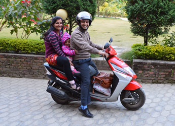 | Mr.ビシャールも夕食前に家族を家に帰してくるとバイクに3人乗りをして帰って行きました。 | |