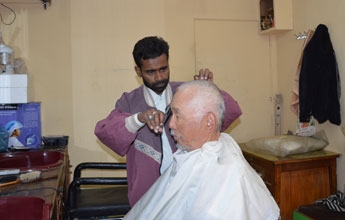 | 「500ルピー」日本で500円ならばまあいいかと小さな散髪屋に入りました。腕はなかなかいいみたいです。 短い頭を鋏でカットし始めますが、後ろから姫が「ショート」というと、「OKショートネ」そういうとバリカンを出してきました。それを見たジョンは、「バリカンの歯をそのままで刈ったら、坊主頭になるから10mmのアダプターをかけてくれ」と日本語でアピールすると「OKネ」。10mm厚くらいのアダプターをかけてくれました。「ホッ」 日本語でも何とか通じるンや。 |