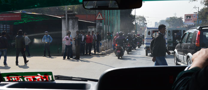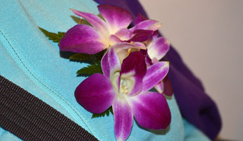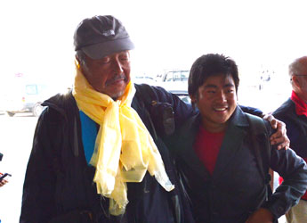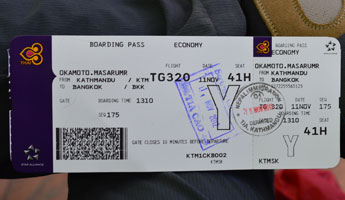 | Mr、ビシャール、マッチンドラー、チャーチットから、4人の首に「無事に日本に帰れますように」との意味を込めた、ネパールの布をかけてくれました。いわゆるお守りです。 | |