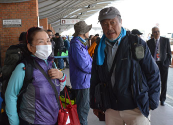 | 定刻より遅れて到着。出迎えゲートには迎えに来てくれたポッチーの顔が見えました。 「ルピーを日本円に交換しなくては」ということで銀行窓口に並びましたがルピーの交換は関西空港では取扱いがないみたいです。 ネパールを出国の際に現地で円に交換するか使い切りましょうと言うことでしょうか。初めての海外旅行で知らないことも多くありましたが海外経験豊富なウッチー会長のおかげで何の不安もなく無事帰国できました。同行の皆様に深く感謝申し上げます。 空港の建物の外に出ると、辺りの景色は秋の様相を呈していました。 |