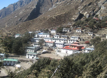 | シャンボテを午前10時に出発。ゆっくりゆっくり歩いたが、1時間ほどでナムチェバザールに到着。 此処までくると何となく安心。明日の夕方には本隊がこのナムチェに到着するはずである。今日はロッジでゆっくりして、明日は医者にかかる予定。 |