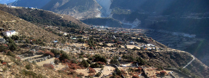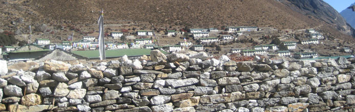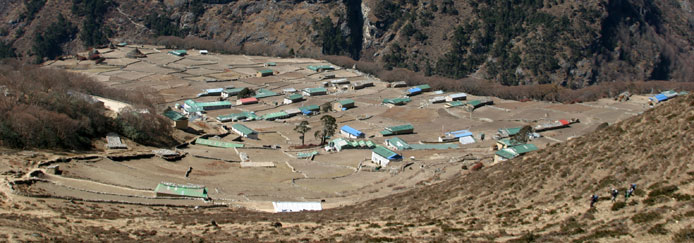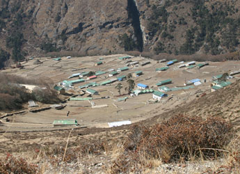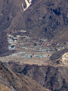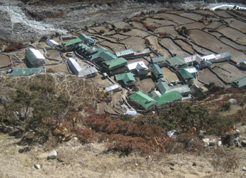 | パンボチェは、エベレスト街道・メインルート沿いの下村と、ゴンパ(寺院)の有る上村に分かれる。上村のほうが大きく静かな感じがする。 | |