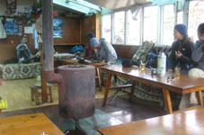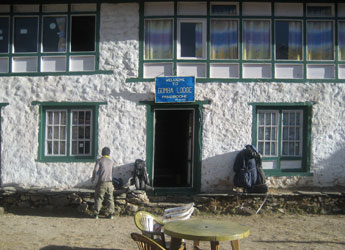 | 16時15分ロッジ到着。 クムジュンはシェルパ族の神の山・クンビラの南斜面に広がる村。やや高度は下がったとはいえクムジュンの標高は3790mで富士山の山頂よりも高い。 この日はまったく食欲なし。ロッジに着いて、静養のための1時間昼寝をした。寒い。とにかく寒い。 |