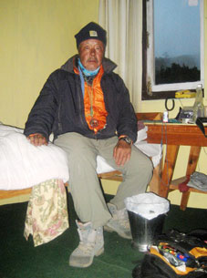 | パルスオキシメータの数値が良くないためベースキャンプへ入るのを断念。チュクンでメンバーと別れリーダーのチャーチットとポーターのサントシの3人で行動することになった。 |