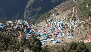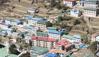 | ナムチェには立派な商店街があり、人力だけで材料を担ぎ上げて作ったのには驚きである。 |