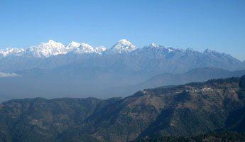| エベレストビューホテルのテラスから見るポルチェの町はタウチェの麓に広がるように見え、素晴らしく感じた。 | ||