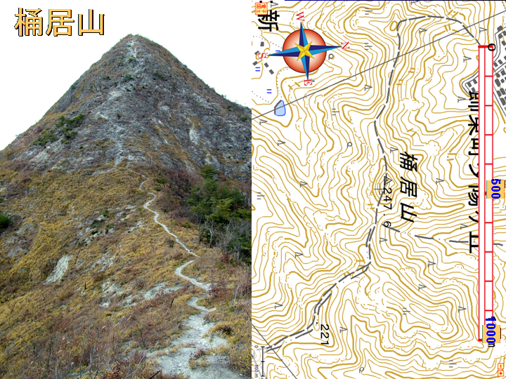 P221から桶居山までの特徴のある地形は? 40m下って20mのぼり20m下って平地に近いコルを50mほど歩き