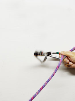 | 岩場のハンガープレートに対しクイックドローのクリップは、クライミングの基本であり重要な技術です。 | ||||
